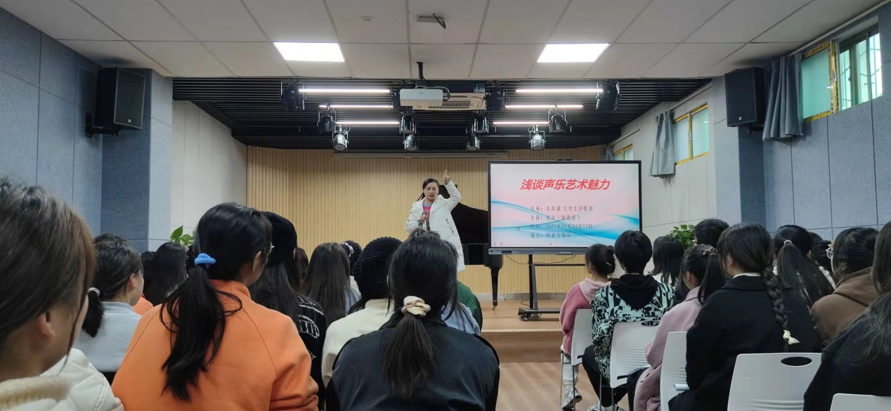 为贯彻落实习近平总书记文艺工作座谈会讲话精神,以美育人、以文化人,弘扬中华美育精神,提升我院师生的文化艺术素养,11月24日下午,美育部邀请党焱老师做客美育大讲堂,为我院师生做“浅谈声乐艺术魅力”主题声乐讲座。学院张戈老师,柴磊老师及各二级学院学生、大学生艺术团成员等200余师生共同聆听了讲座。
