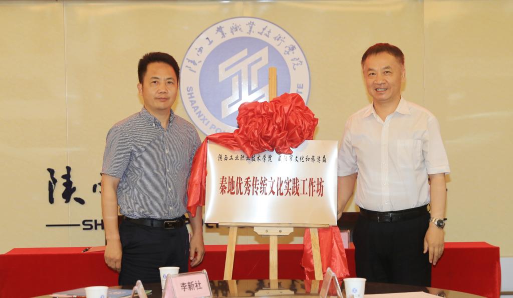 美育部部长付胜利与市群艺馆馆长李钧共同揭牌“秦地优秀传统文化实践工作坊”
