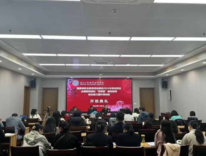 11月19日上午,2024年全国高职院校“双师型”美育教师综合能力提升培训开班典礼在我校经开校区启新楼举行。学校党委副书记贺天柱,继续教育与培训学院院长闫军,美育部部长付胜利和培训管理人员、全体参训学员40余人参加了开班典礼。典礼由继续教育与培训学院院长闫军主持。