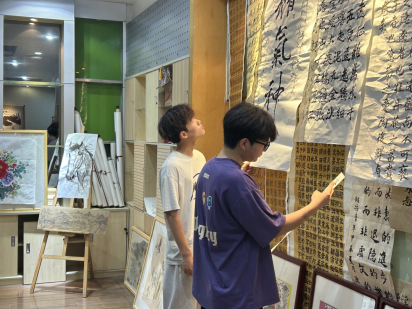展览现场,一幅幅笔精墨妙的书画作品或苍劲有力,或清新雅致,或记录生活瞬间,充分展现了书画社学生独特的展示视角。作品内容既有经典诗词、名言警句,也有山水花鸟、人物写生及校园风光,体现了同学们对传统文化和现代艺术的融合与创新。