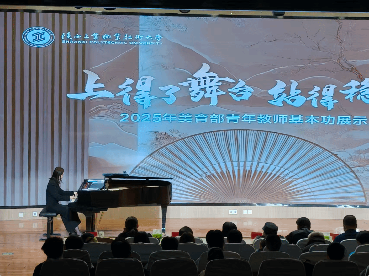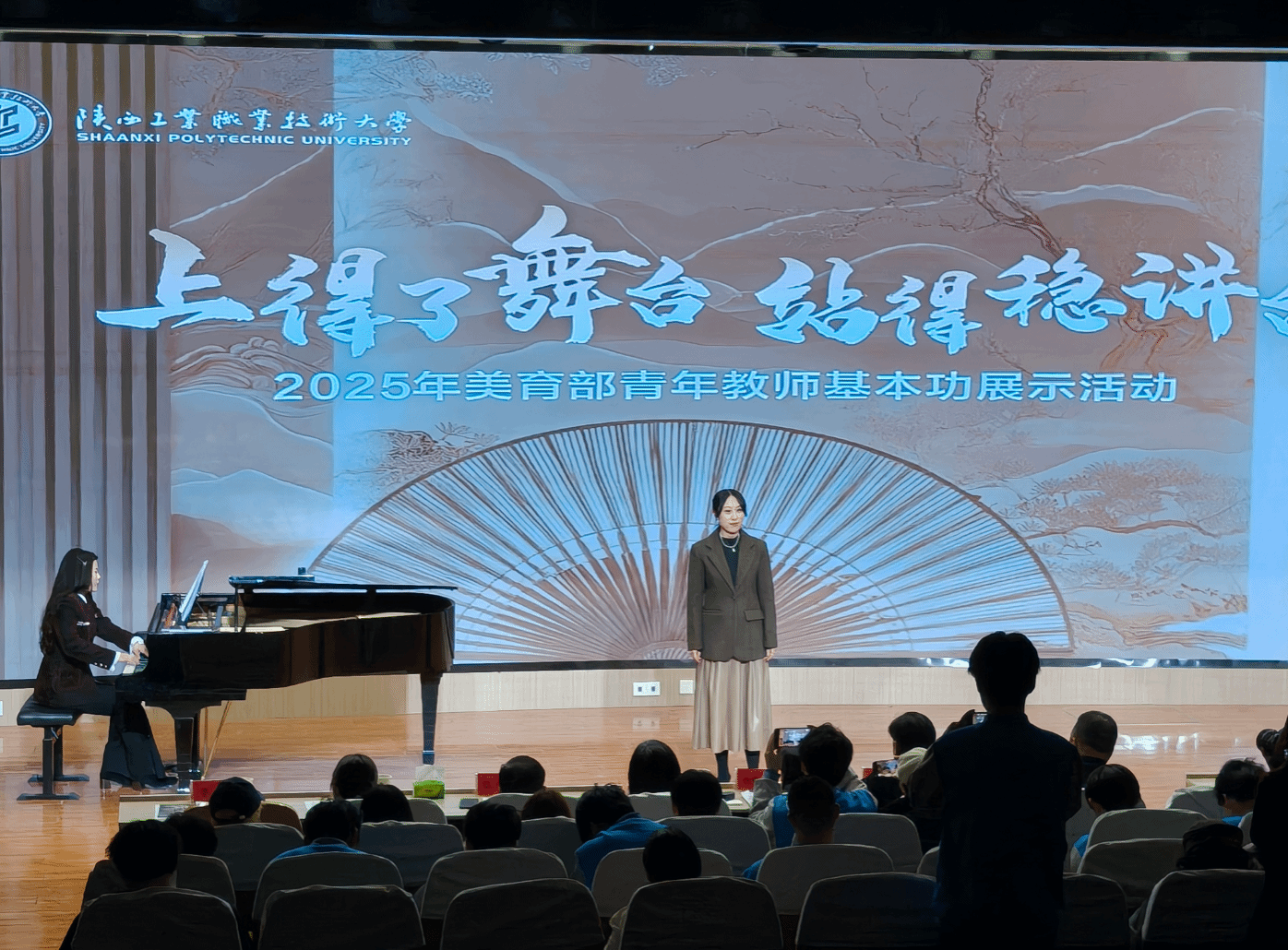 为提升我校美育教师综合素质,12月24日下午,由教育部课程思政教学研究示范中心、高职美育研究中心主办的2025年美育部青年教师基本功展示活动在学术会堂举办。西北大学出版社总编桂方海、副总编张运琪、编辑第明,我校党委副书记贺天柱出席了本次活动。活动还邀请到知名学者、我校客座教授杨焕亭老师,著名作曲家赵永生老师,咸阳市群众艺术馆馆长李军,咸阳师范学院音乐学院院长樊琪,我校教务处处长张磊、公共课教学部部长赵娇、陕西省教学名师贾格维担任活动评委,美育部全体教师及二级学院学生代表参加了展示活动,活动得到了西北大学出版社的支持。