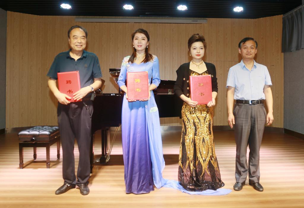 党委副书记贺天柱为知名学者杨焕亭、国家二级演奏员车佳容、青年钢琴家姚依颁发聘书
