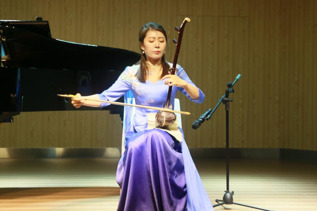 聘任仪式结束后,在美育部部长付胜利的致辞中音乐会拉开了帷幕。首先以中音板胡《秦腔曲牌》、高音板胡《花儿与少年》开场,其曲调高亢悠扬,淳朴清新。女声独唱《如梦令》《越人歌》向观众展示着我国古诗词阳春白雪式的唯美典雅。萨克斯六重奏《掀起你的盖头来》将西洋乐器与东方美完美融合,别具一番风格。《红旗颂》的演奏激荡着观众心中的家国情怀,将晚会推向了高潮,获得连连掌声。选自著名歌剧片段的《女人善变》《两地曲》展示着歌剧的魅力,极具感染力的歌声引起观众情感共鸣。萨克斯独奏《Saxophone》,活泼的曲调给晚会营造出欢乐愉悦的氛围。具有工院特色的小合唱《我喜欢》青春又充满校园气息。钢琴独奏《a小调圆舞曲》《升c小调夜曲》《The crave》,钢琴优美的音色令观众如痴如醉。最后伴随着一首激昂、高亢的《黄河颂》,将音乐会再一次推向了高潮。