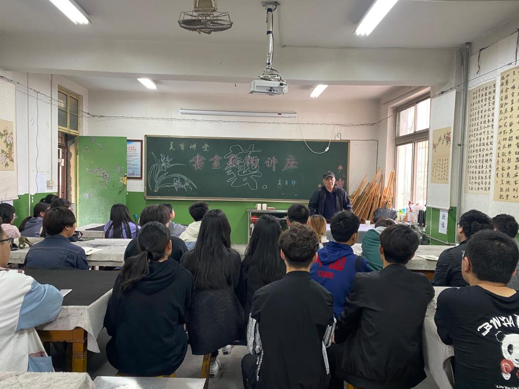 诗以言志,笔墨抒情,为了传承书画艺术,搭建大学生书画爱好者学习交流平台,4月21日下午,明伦餐厅南二楼书法、绘画鉴赏教室座无虚席,美育部邀请陕西书画研究院名誉院长周朴老师做客“美育讲堂”,为我院书画爱好者作了一堂生动的书画知识讲座,周老师从陶器的制作,毛笔的发明引入,介绍了中国传统书画艺术的发展历史、学习所需的基础、方法和要求。周老师指出,书画基本功学习的最佳方法是师法古人,通过学习前人优秀的作品,感知其中所蕴含的知识,从而有效提高自身的境界。他说书画创作首先要使作品中蕴含感情,感情要直接发自肺腑,真挚且细腻,发自内心的真情实感才是最重要的。此外,周老师还从如何使书画作品内容与形式完美结合、作品的效果、字体的选择以及对印章的使用等方面做了精彩的讲解。