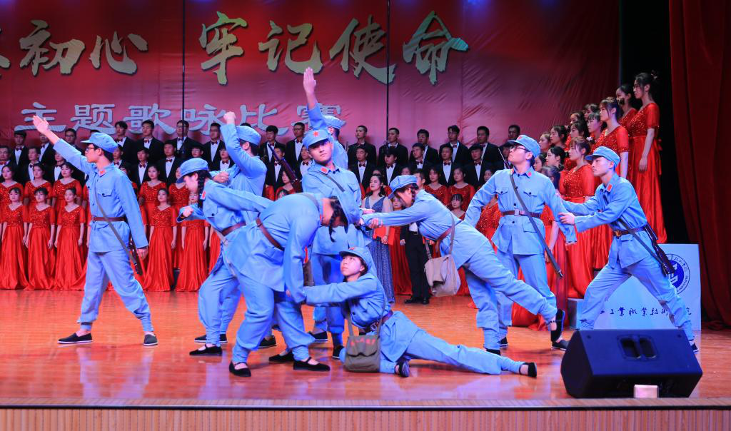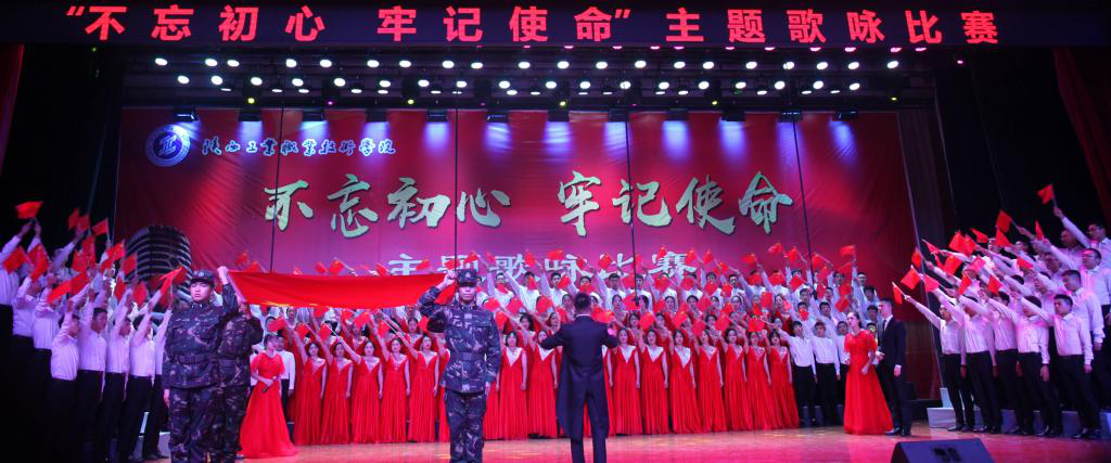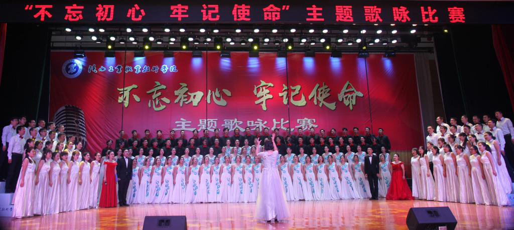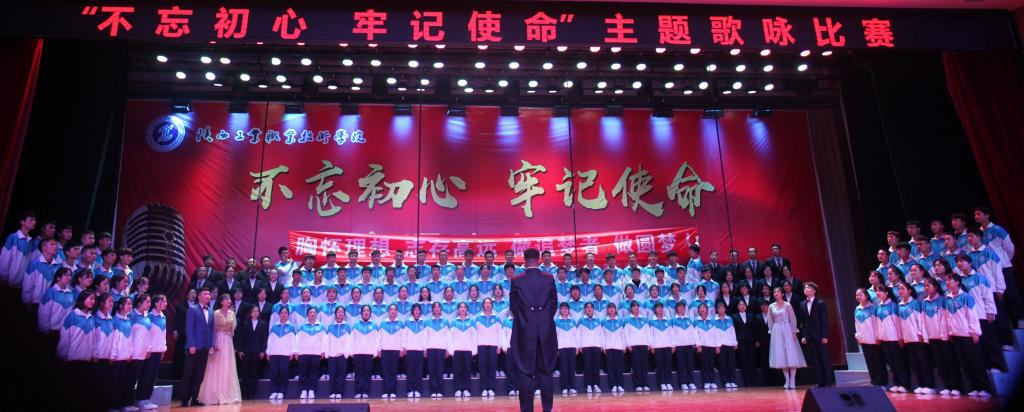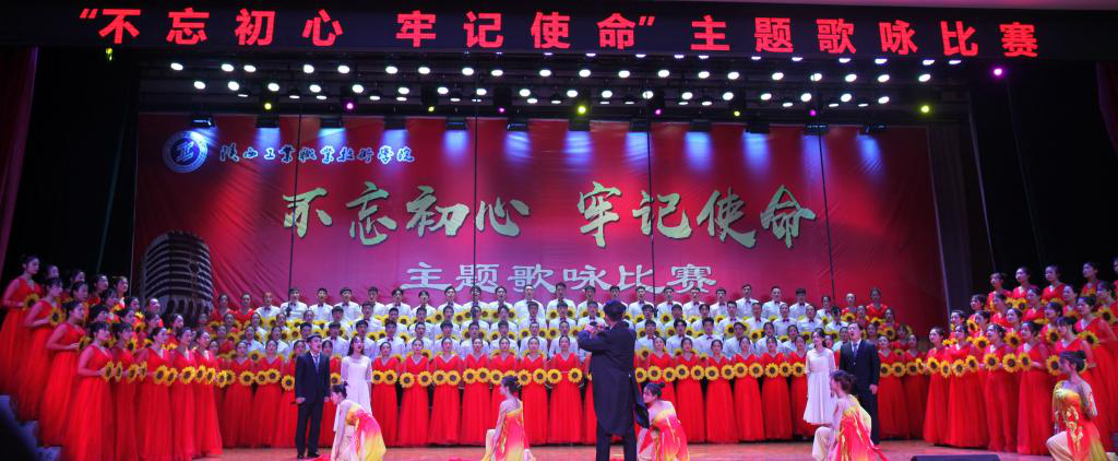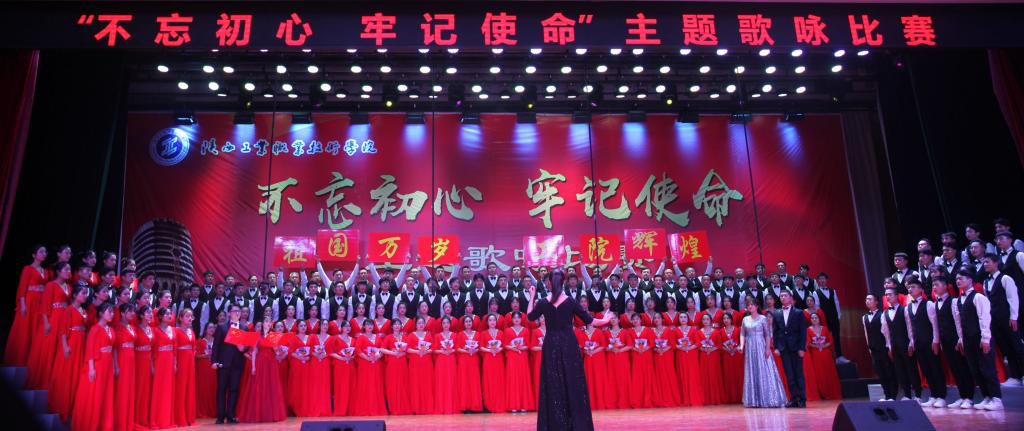 在庄重祥和的气氛中,十个二级学院合唱队依次登场。按照参赛要求,每个参赛队演唱两首歌曲,一首为必唱歌曲《陕西工业职业技术学院校歌》,一首为自选歌曲。在比赛中每个参赛队都做了精心准备,采取朗诵、领唱、舞蹈、情景表演等多种表演方式,给评委和观众留下了深刻的印象。十支参赛队轮番亮相,他们用歌声角逐,倾情献唱,展示出了我院师生蓬勃的朝气,昂扬的锐气;他们纵情高唱,唱出青春的气慨,心中的豪迈;用优美的歌声抒发了对党和祖国的热爱之情,充分展现出青春力量与坚定信念。台上歌声嘹亮,台下掌声阵阵,整个明德堂洋溢着高涨的比赛激情和观赛热情,参赛者的奋力表演,观众的大声叫好,把不忘初心牢记使命的活动主题推向高潮,并成为激励广大师生不断前进的精神动力。