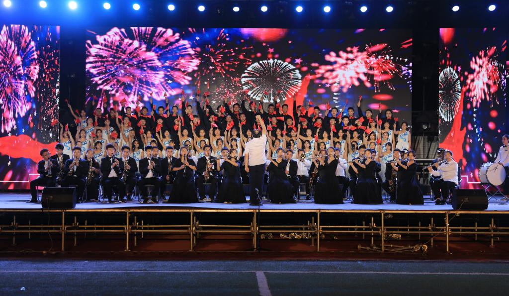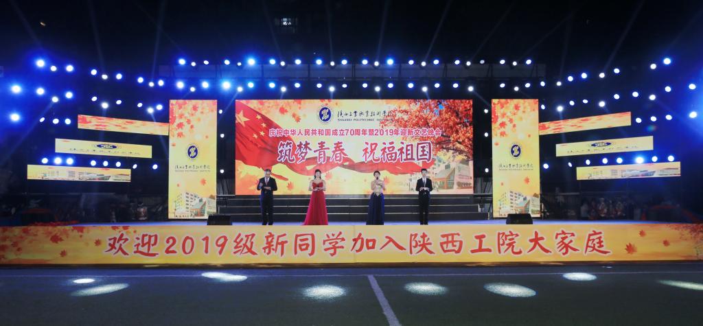秋风送爽,丹桂飘香。9月11日晚,我院田径运动场上灯光璀璨、歌声飞扬。为欢迎2019级新同学,由党委学生工作部、美育部主办的陕西工业职业技术学院庆祝中华人民共和国成立70周年暨2019年“筑梦青春 祝福祖国”迎新文艺晚会在这里举行,学院领导惠朝阳、张晓云、康强、贺天柱、田昊、梅创社以及各部门负责同志与2019级7700余名新生共同欣赏了这场视听盛宴。