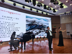 音乐会以古琴曲《流水》开场,流水清音勾勒古典意境。随后,男声独唱《关雎》唱响千古情诗,延续雅致韵味。唐宋诗词篇章尤为惊艳,《别君叹》道尽离愁,《江畔独步寻花》唱响欢悦,《锦瑟》诠释怅惘,《枫桥夜泊》萦绕孤寂悠远。高潮处,张戈与崔佳琦联袂演绎《沁园春・雪》,尽显家国豪情。女声独唱《青玉案·元夕》以婉转唱腔勾勒元宵盛景,尽显古典韵律之美。终章时,大学生艺术团合唱团以《一路生花》压轴,融古典意蕴与现代朝气,为诗乐盛会画上圆满句点。整场演出荟萃古琴、声乐、扬琴、钢琴、萨克斯等多元艺术形式,以诗词为骨、音乐为魂,咸阳市青年艺术才俊和我校美育部教师通过声乐演唱与器乐演奏交替呈现,织就出一幅立体丰盈的艺术长卷。