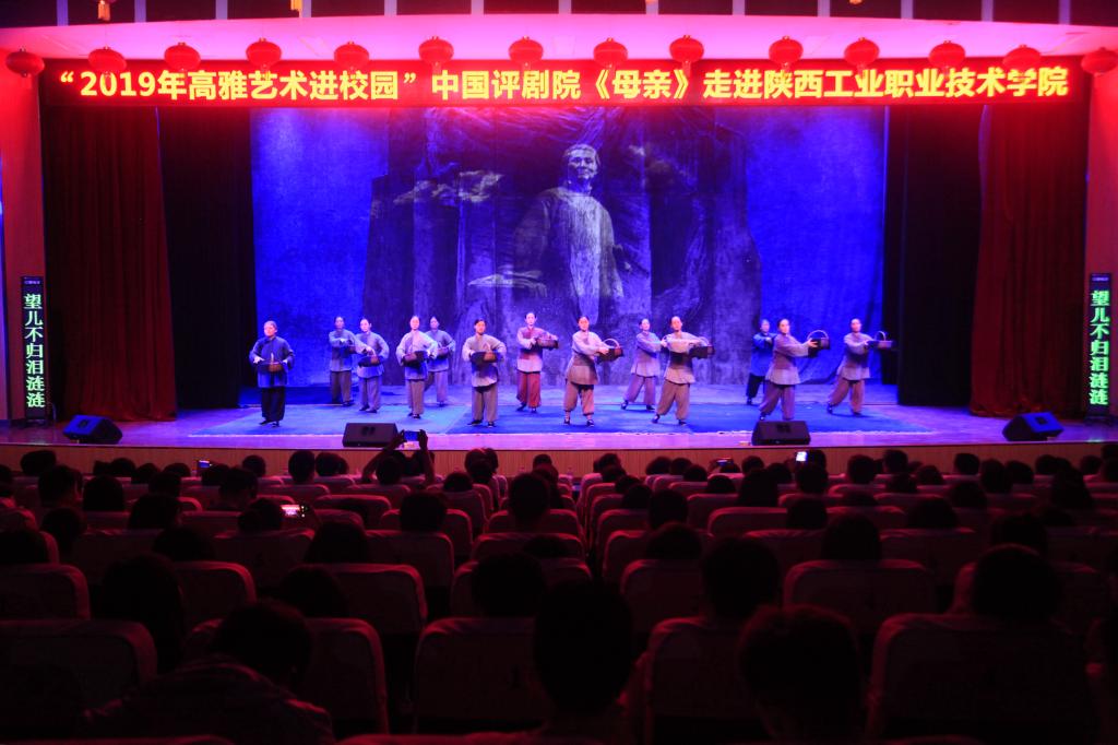 6月19日晚,由教育部、文化和旅游部、财政部主办,我校承办的2019年高雅艺术进校园——中国评剧院《母亲》走进陕西工业职业技术学院专场演出在明德堂隆重上演。国家教育部2019年高雅艺术进校园活动专项调研组教育部艺术教育委员会委员、中国艺术教育促进会执行秘书长梁建敏,教育部艺术教育委员会常委、清华大学美术学院原副院长、教授卢新华,上海市教委体卫艺科处副调研员蒋萍芳,北京航空航天大学团委副书记支媛媛,高雅艺术进校园活动项目主管罗晶,陕西省教育厅体卫艺处副处长韩烨、艺术专干夏胡阳子,中国评剧院副院长蔡长旭、刘云丽,我院党委书记惠朝阳、党委副书记贺天柱、各部门负责人、二级学院总支书记、学工办主任以及师生代表1100余人观看了演出。