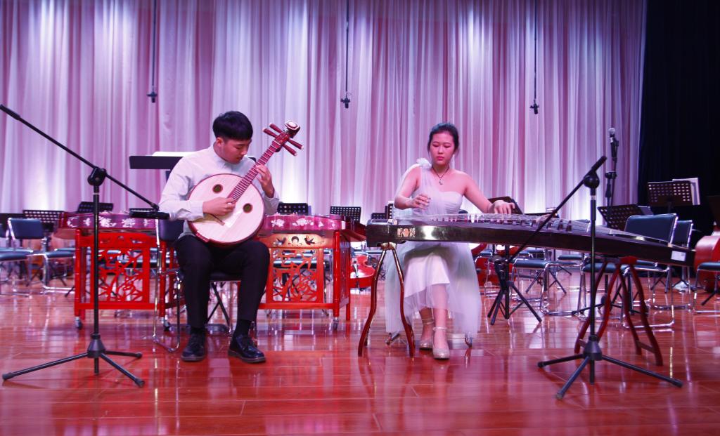 音乐会荟萃了耳熟能详的中华民族经典作品,包括管弦乐、竹笛与乐队、古筝与中阮、唢呐独奏、二胡齐奏、秦腔、独唱等10个曲目。一曲管弦乐合奏《情怀》为整场演出拉开序幕。竹笛与乐队合奏《秦川笛韵》以心音化作笛韵,寄真情赞美秦川,节奏倏忽多变;秦腔清唱《白蛇传》、《三滴血》选段让观众们体会戏曲民族文化瑰宝的同时,多层次感受了剧中人物丰富的精神世界;古筝与中阮合奏《酒狂》以酒徒大醉之后的狂态为主题,表现出狂放、浪荡、不羁的琴曲;乐声时而高亢,时而悠扬,无不淋漓尽致地展示了演奏者们高超的技艺,同时也深深地感染了现场观众。男声独唱《归来的星光》、《两地曲》悠扬婉转、雄浑有力,把演出推向了高潮。接下来的唢呐独奏《黄土情》则表现出老陕人自古以来刚中带柔的性格特点,给观众们带来了别样的艺术熏陶;二胡独奏《战马奔腾》情深意浓,用纯净的旋律将我院师生带入了高雅音乐殿堂。管弦乐合奏《韩城情韵》结束后,乐团指挥张栋老师对二胡、扬琴等乐器做了简洁介绍,并由演奏家一一示范演奏,使现场师生增加了对民族乐器的了解。最后,演出在激昂的管弦乐合奏《好汉歌》中落下帷幕。