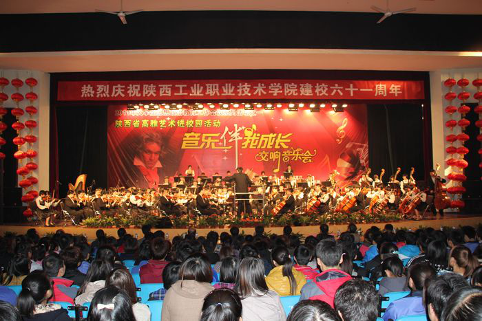 11月14日下午4点半,由陕西省教育厅主办的2011年高雅艺术进校园系列活动——西安铁一中交响乐团走进陕西工业职业技术学院专场音乐会在我院明德大礼堂举行。陕西省教育厅体卫艺处副处长王彬武、铁一中副校长姜书念、学院党委书记邓志辉,党委副书记王天哲,副院长王晓江,纪委书记赵嘉骏以及我院1200余名师生齐聚一堂,共享这一视听盛宴。