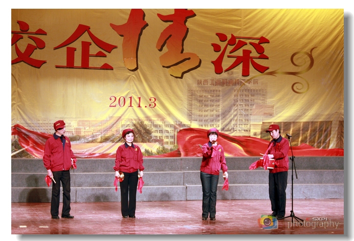 颁奖仪式结束后,演出在我院大学生艺术团管乐团演奏的雄劲的乐曲《前进组曲》中拉开序幕,接下来金盾纺织公司带来的独舞《雪中梅》,我院艺术团学生表演的粗犷唯美的舞蹈《牵魂》,纺织染化学院学生富有青春气息的现代舞表演,赢得了阵阵热烈掌声,金盾纺织公司表演的小品、配乐诗朗诵,舞蹈《洗衣歌》等节目精彩的演绎,展现了金盾纺织职工的风采,给整场演出增添了很多亮点,演出现场高潮迭起,感染了每位观众,台上台下,相呼应和,掌声喝彩声连成一片。接着,诙谐、幽默的三句半、欢快、活泼的男女生二重唱,精准独到、灵动有力的武术表演,更是给现场观众留下了深刻印象。最后,晚会在热情奔放、具有浓郁黄土地气息的舞蹈《天地秧歌》中演出落下帷幕。演出结束后,金盾纺织有限公司和学院领导上台与演职人员合影留念。