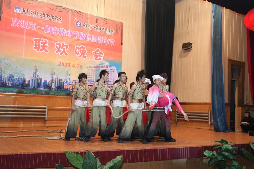 作为校企文化融合的首次尝试,4月29日晚,我院和宝鸡众喜水泥有限公司共同举办的“庆祝‘五一’国际劳动节暨‘五四’青年节联欢晚会”,在众喜水泥公司礼堂举行。众喜水泥有限公司员工和岐星村村民1200余人观看了晚会。